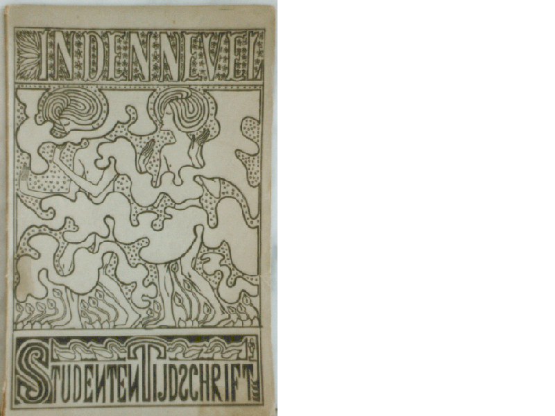 "In den Nevel" means "In the mist" or "In the nebulae". It is a periodical for students of the Delft University of Technology. Its cover was "drawn" by Jan Toorop in 1895. Originally, it was in fact carved as a woodcut and every year the cover was printed with a different color.