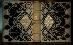 The Nieuwe Kunst aspects of the design lie in the fact that the decoration emphasises the construction of the book: The lines on the back emphasize the yarn with which the book is bound and the decoration on the back and front are kept within rectangles, thus emphasising the rectangular blocks in which the characters are set. Though the decoration itself is abstract and constructed on a framework of chequers the overall appearance is curvilineair.