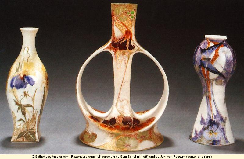 The quality of decorative arts is also stunning. Numerous firms adopted an Art Nouveau (Niewe Kunst in Dutch) design at the end of the 19th century. For instance the firm Rozenburg in the Hague (Den Haag) that invented the eggshell porcelain and is well known for its floral designs. Purmerend, Zuid Holland are also some famous Art Nouveau porcelain firms.