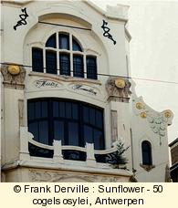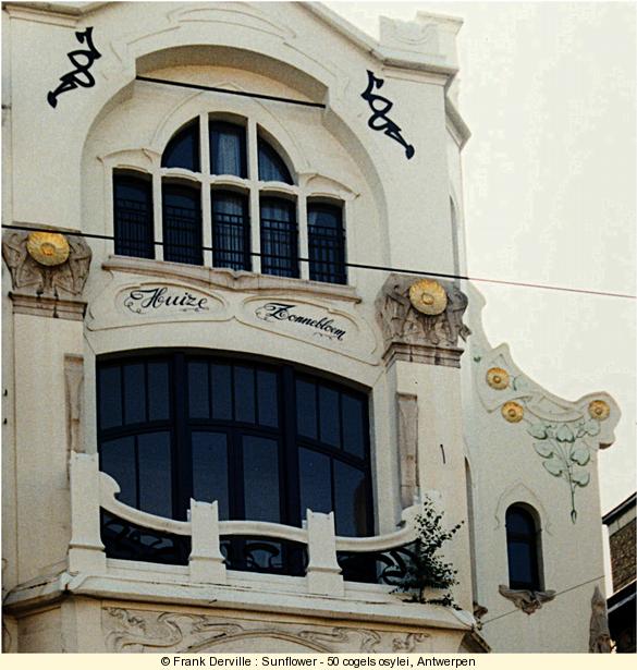 Villa "Sunflower" (Huize Zonnebloem) by Jules Hofman in 1900. The sunflower is used for the decoration of the façade. Nature and particularly sunflowers has been used to decorate Art Nouveau buildings. |