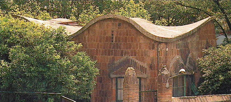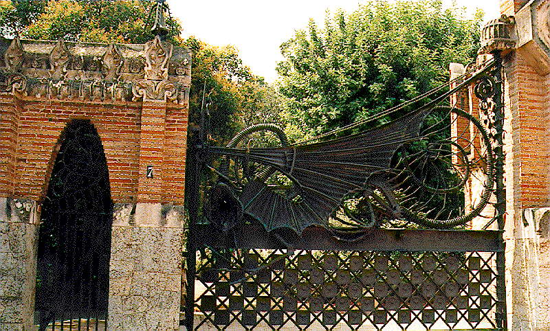 The Collegi de les Teresianes is a convent of the St Therese of Avila monastic order. Gaudi took this project on the fly. It was started one year earlier by an unknown architect. The flat rectangular plan was already settled. The difficulties in this project were getting a low cost (the teresian order nuns is mean). Gaudi used bricks and ch-shaped archs in order to eliminate the two supporting walls that used the unknown architect for the ground floor. It results in a higher liberty for organizing space. In fact, these ch-shaped arches, essential element of the structure, are also used as a decorative pattern in all the building. We can point out one of Viollet le Duc's lessons: the decoration must be closely related to the structure. |