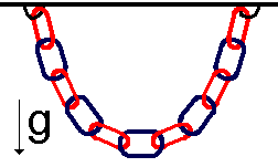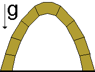 It is the first exercise with our model, making the simplest stone structure: an arch. Take a chain with small links and glue its two extremities to your bedroom ceiling (it works also in your bathroom). You will find thanks to our transformation above (i.e. downside up) an optimal shape for your arch. Playing with the length of the chain, and the distance between the two extremities, you can obtain different shapes for arches.