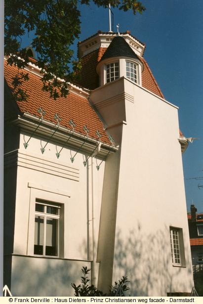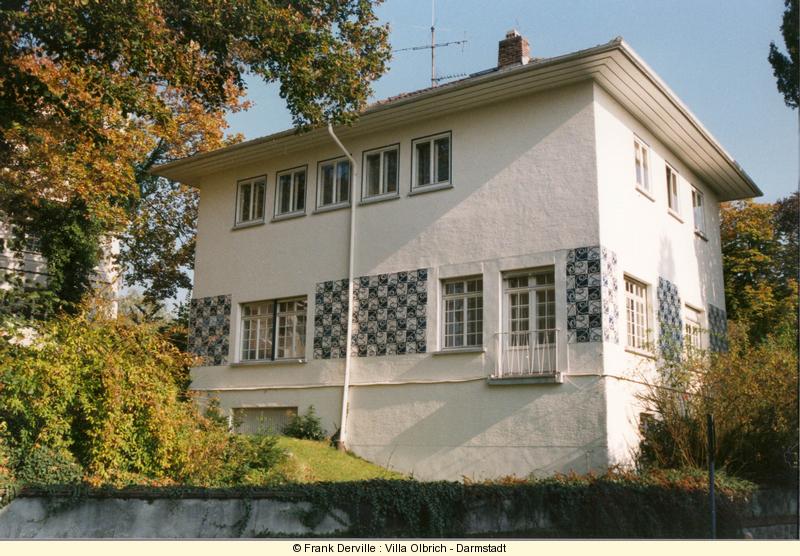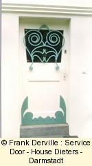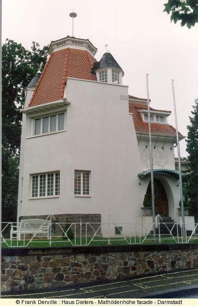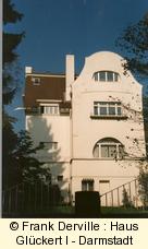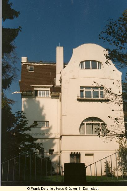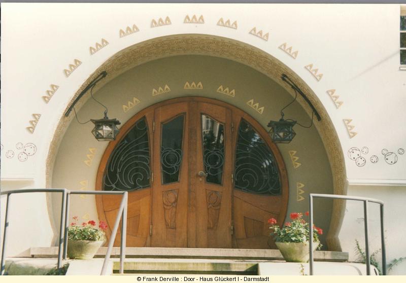 E | Grosses Haus Glückert (or Haus Glückert I) by Olbrich in 1900. The door is very interesting, reminding the one in house Dieters. The iron gate is also worth. |
