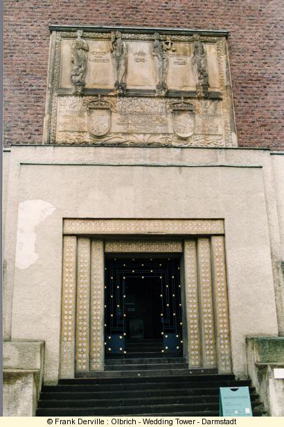 A | Wedding Tower (Hochzeitsturm) : It is visitable but don't ( unless the wedding room is open). The fare is expensive for a poor sightseeing. It is an Art Nouveau fan trap. Just enter the hall and look at the mosaic. That is all that you would pay for and it is not worth. This tower was a wedding gift to the great duke from the town. The symbol is unity and complementarity as the 5 fingers. |