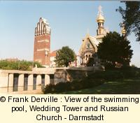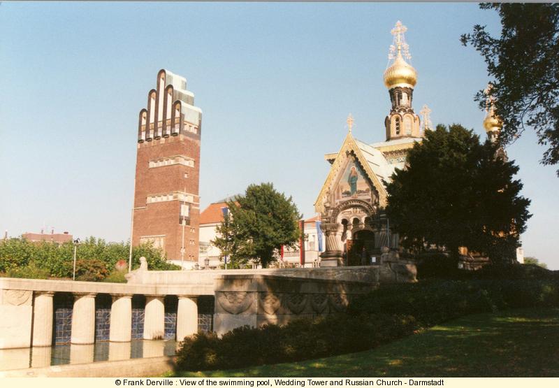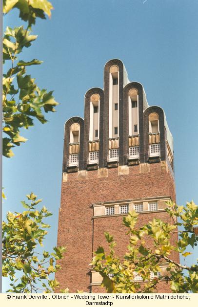 This town is about 30 kilometers away in the south from Frankfurt. The great duke Ernst Ludwig founded in 1899 a colony of 7 artists. Its aim was to present to people a modern block integrating housing and work place. This block is located on the Mathildehöhe. The colony organised 4 exhibitions in Darmstadt in 1901, 1904, 1908 and 1914.