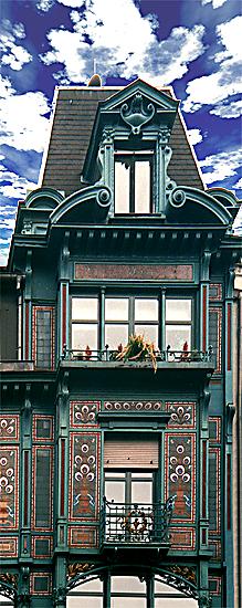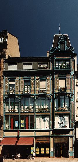 shop bears witness to the very beginnings of art nouveau in Strasbourg. Its metallic architecture allows to use large windows as shown by the three first levels. If the decor still has difficulty to get rid of eclecticism as it is attested by the top of the