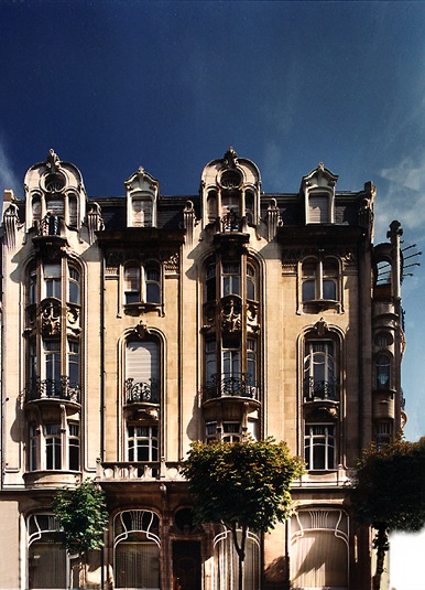 windows either triple (or convex bays), or simple or even twinned (3rd floor), the latter getting under the cornice a