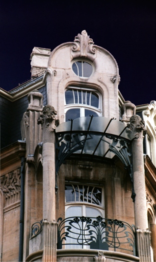 glass awning. Don't forget to look at the side windows of the oriel: they are convex.