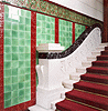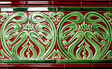 art nouveau tiles on the walls, and a ceiling adorned with outstanding