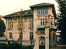 (1).It is one of the first art nouveau building by Berninger & Krafft and brought them fame. With its jutting and low slope roof, this house looks like an italian villa. The façades visible from the street are of french limestone (Savonnières) and are adorned with easter lilies. The window sills end like a coma, meanwhile the
