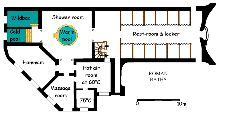 building (inaugurated in august 1908) hosts (among else) two pools as well as roman baths.