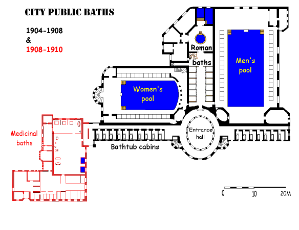 In order to be complete, we must mention that, at the beginning, the City Public Baths were also offering the services of a solarium and a dog bath (the