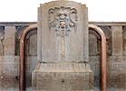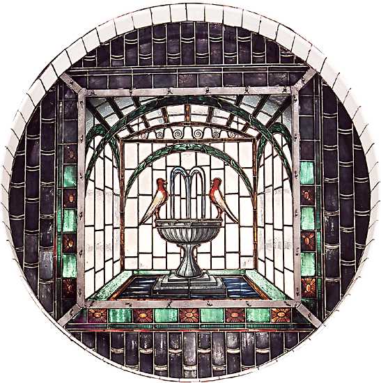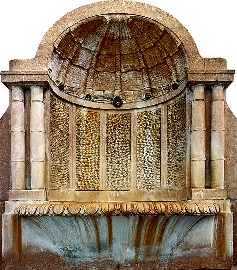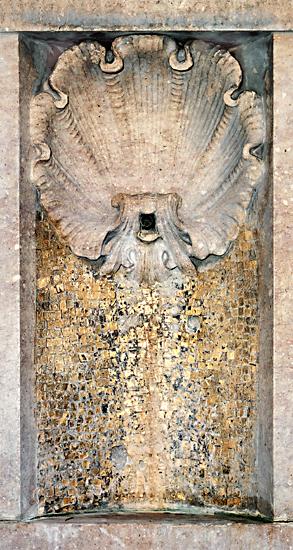 fountain adorned with golden mosaics.