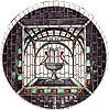 Even the staircase is lit by a stained glass