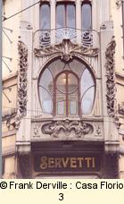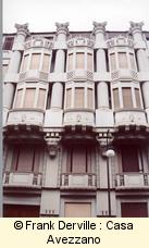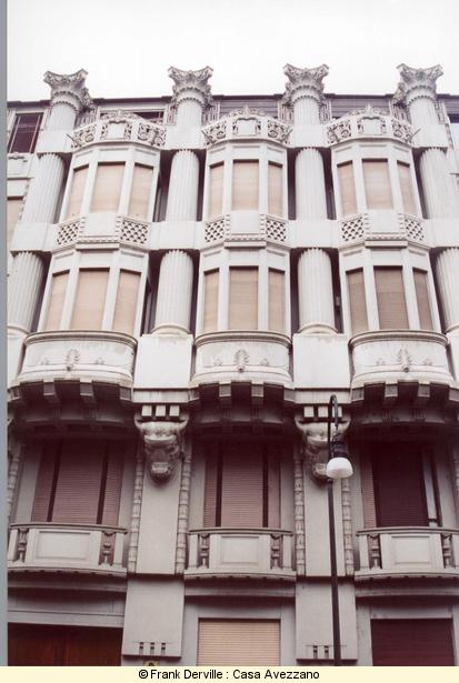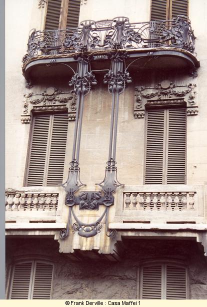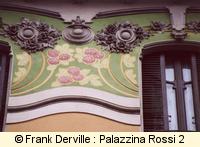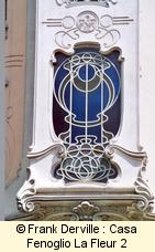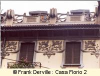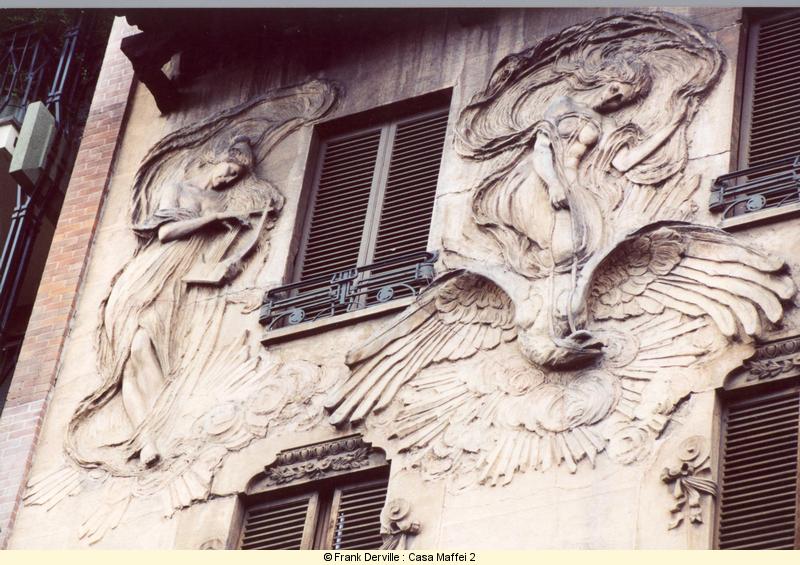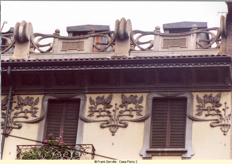 Montevecchio, 50 Mazzucotelli is a Milanese iron maker. The most well known Italian Art Nouveau iron maker. This building is important bothl for the quality of the frescos showing women and a bird and for its iron balconies. |