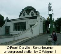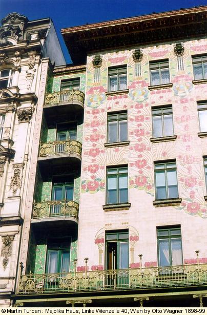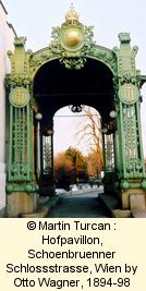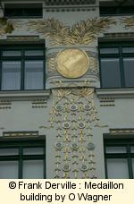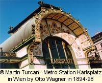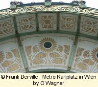 Otto Wagner is the most well known architect of Austria. As a teacher at the architectural school, he introduced the Art Nouveau/Secession style and diffused it to his pupils. His masterpieces are famous : the underground stations (particlarly those of Karlsplatz and Schonnbrunn), the houses in Linke Wienzeile, the central post office. His first designs melt eclectism and rationalism with large glass roofs and steel. Around 1900, he introduced Secession patterns and stressed on the building decoration. In the 1910, the decoration integrates itself in the building structure.